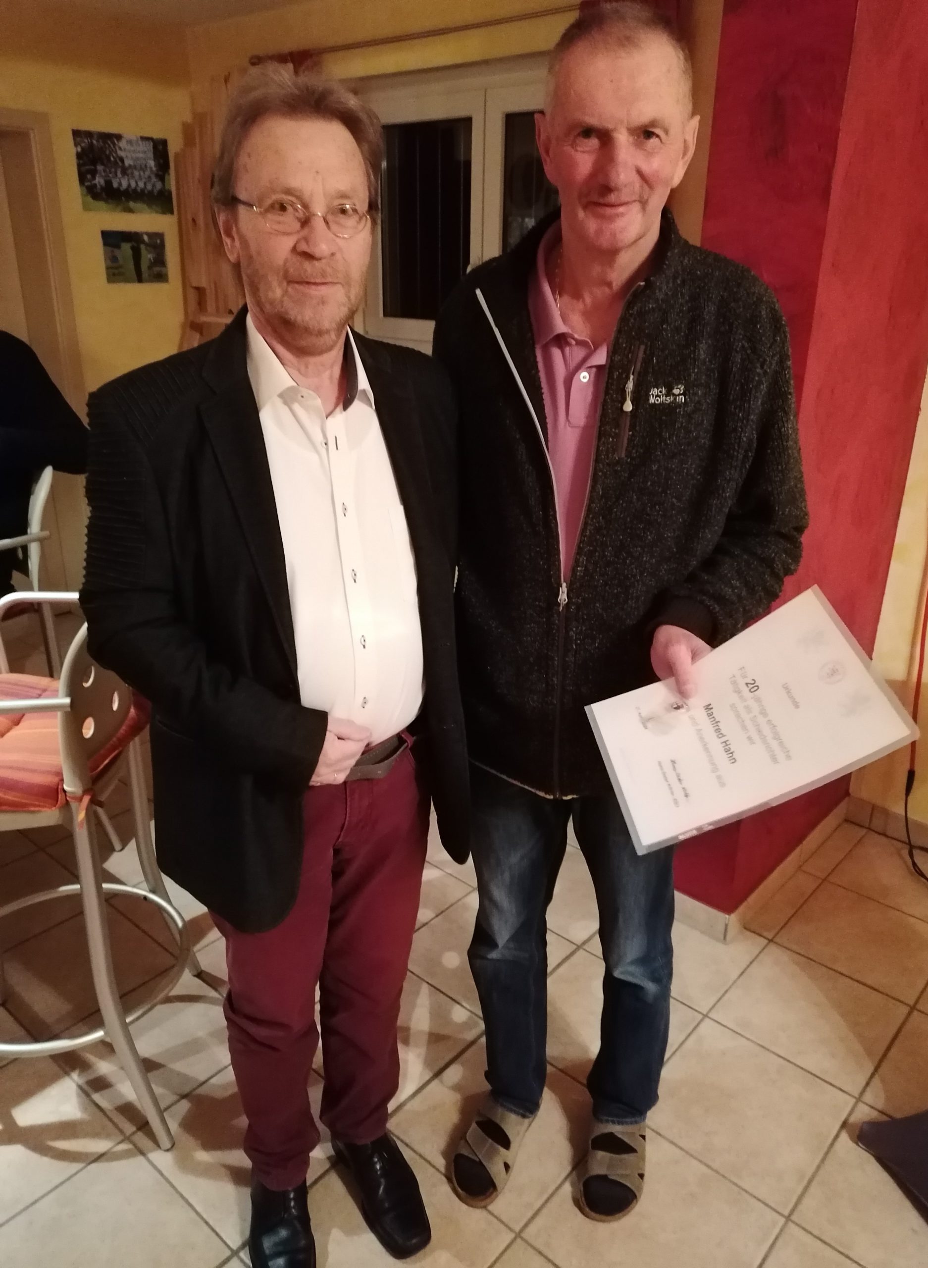KSO Hans-Dieter Köhler gratuliert Manni für 20 Jahre SCHIRI